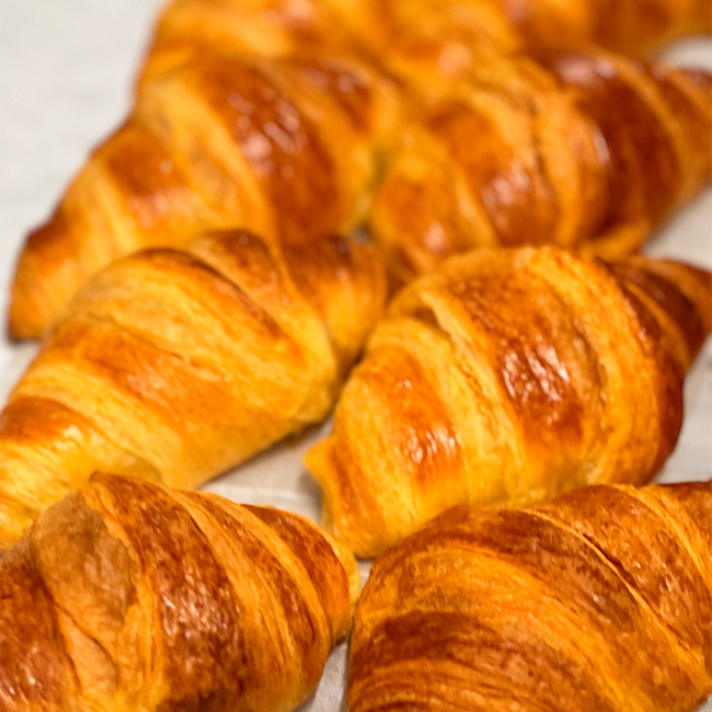 Croissant francés de mantequilla acompañado de café o té